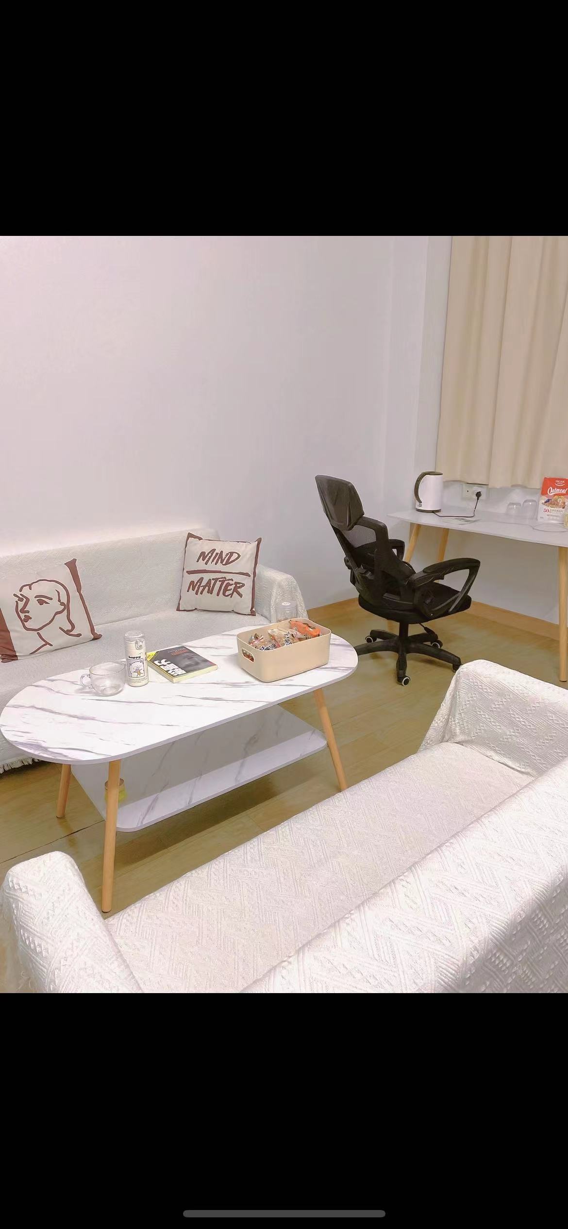 1.7米沙發(fā)一個(gè),1.4米沙發(fā) 一個(gè)、1.2米橢圓形桌子一個(gè)