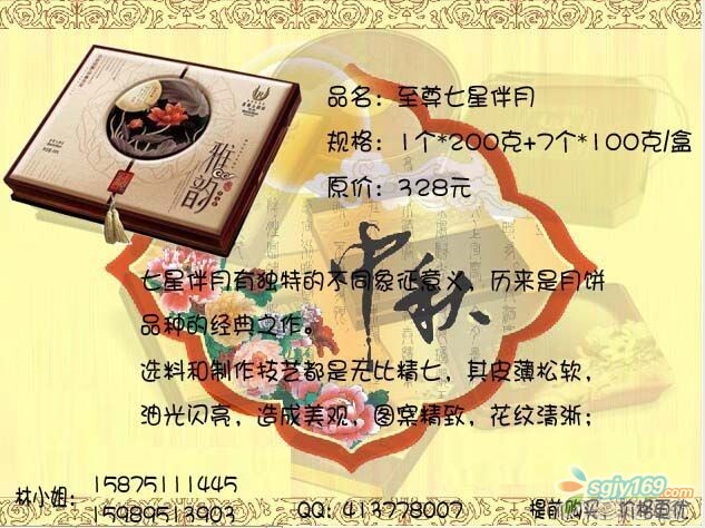 正文摘要:本帖最后由 Rachel 于 2014-9-4 09:17 編輯 萊斯七星伴月,月餅中的勞斯萊斯 五星品質(zhì),五星享受,是您送禮的最佳選擇! 最后23盒,售完即止,員工價優(yōu)惠全城,快快來電吧! |